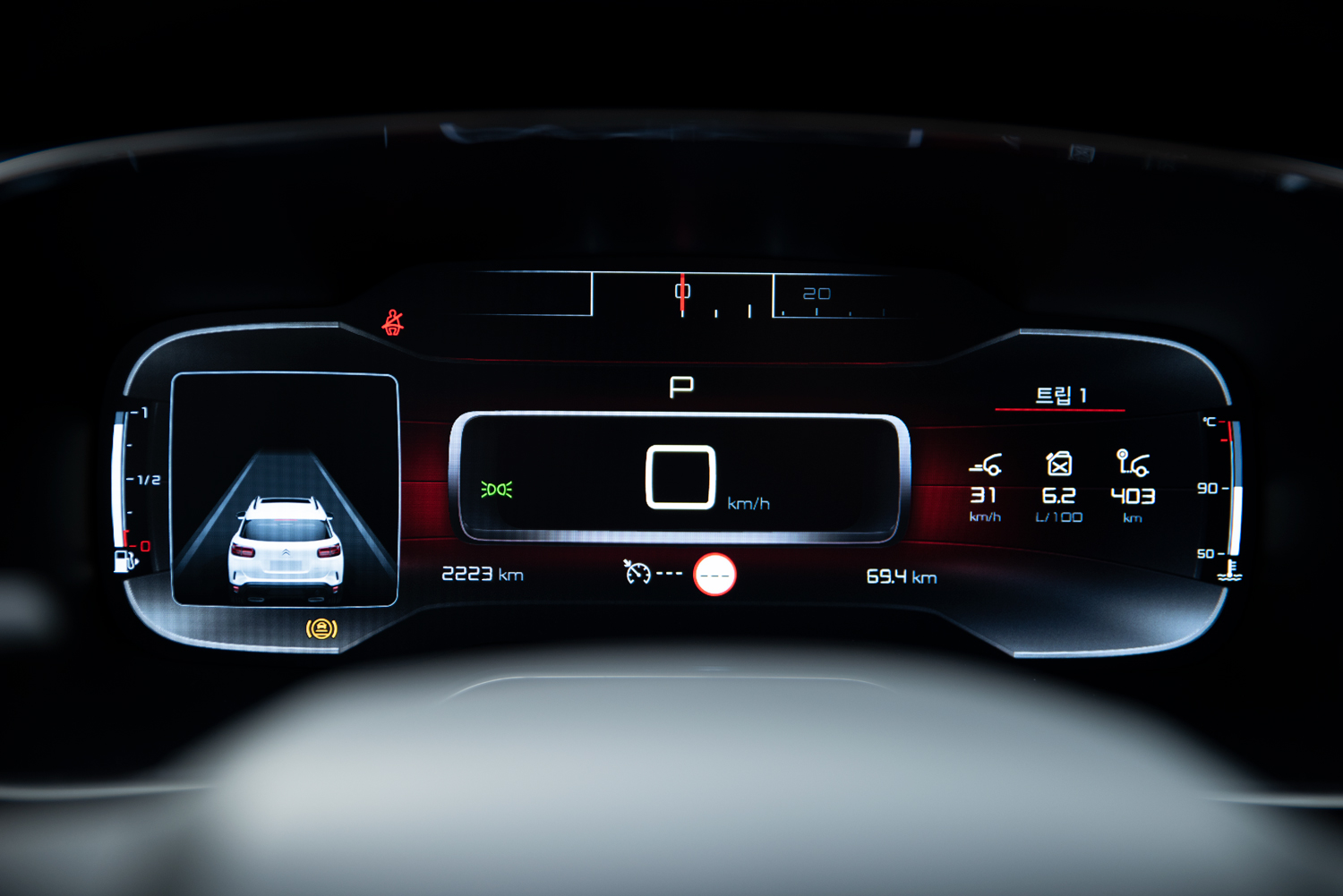 계기판은 전체가 디지털화 되어 있습니다. 총3가지 화면 모드를 지원하고 있습니다. 현재 사진은 "퍼스널" 모드 입니다.